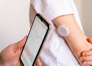 В настоящее время все большее распространение получают приборы для бесконтактного непрерывного определения уровня глюкозы крови. Прибор достаточно поднести к сенсору, установленному на плече, и на дисплее прибора появится результат.